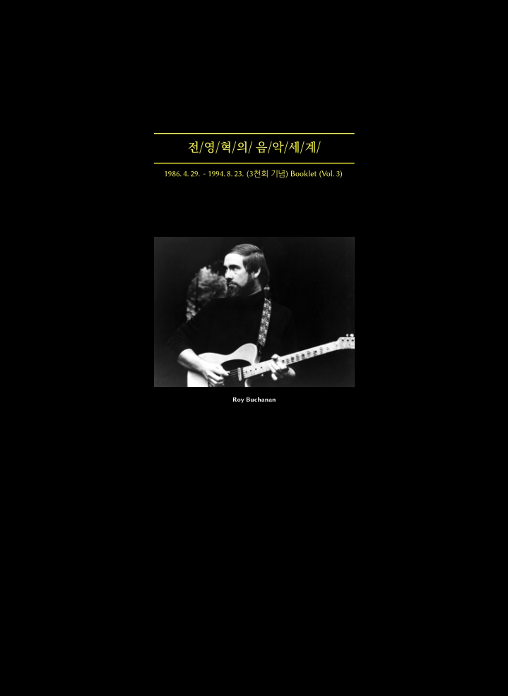 로이 부캐넌(Roy Buchanan)을 전면에 내세운 부클릿 3호이다. 이 소책자도 여분의 우표를 보내서 직접 받았던 것 같기는 한데 기억이 확실하지 않다. 1994년 8월이면 밤마다 라디오를 들으며 알바를 하던 때다. 엄청나게 더웠던 그해 여름, 미국 월드컵에서 독일을 상대로 홍명보가 시원한 중거리포를 작렬시켰던 장면이 기억난다.